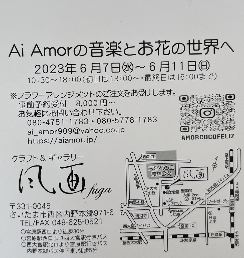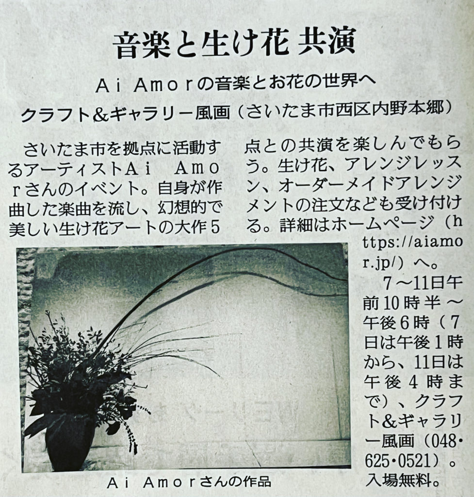 Ai Amorの音楽とお花の世界へ 生け花個展